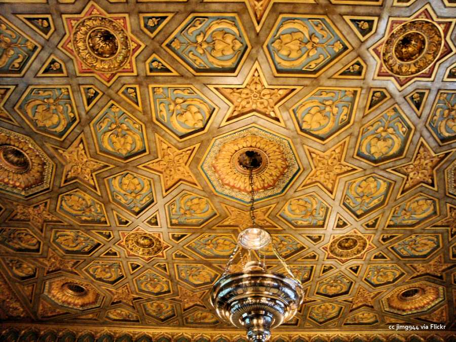 Not so for Hearst…here is one of the treasures that many visitors miss. The size and shape of the ceilings that Hearst had bought dictated the rooms that Julia Morgan built. Take some time and look up…